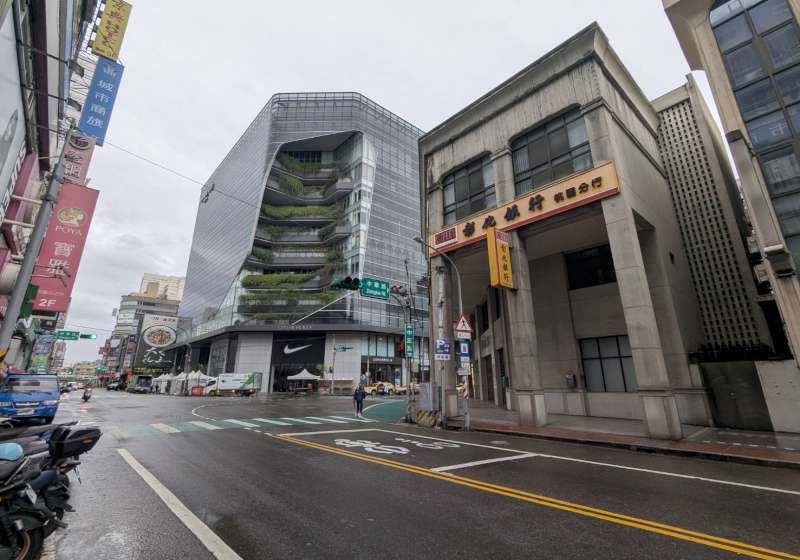 以前也來過好幾次桃園,但從沒特別留意過。也可能是前一晚下過雨,天空和建築物顯得特別明亮。在中正路上,隔著中華路的兩側,剛好是大正時期風格的建築,與現代風格的流行廣場。