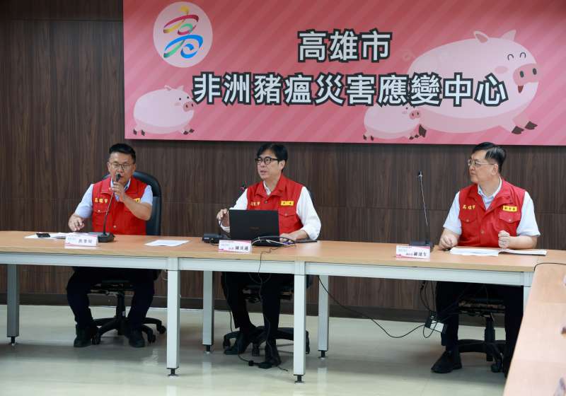 因應中部傳出非洲豬瘟個案,高雄市長陳其邁10月26日主持應變會議,並與中央災害應變中心視訊連線,簡報高市防疫作為,建請中央提供廚餘養豬場轉型飼料、強化廚餘再利用以 、禁運禁宰期間豬農損失等補助。 陳其邁說,溯源台中豬