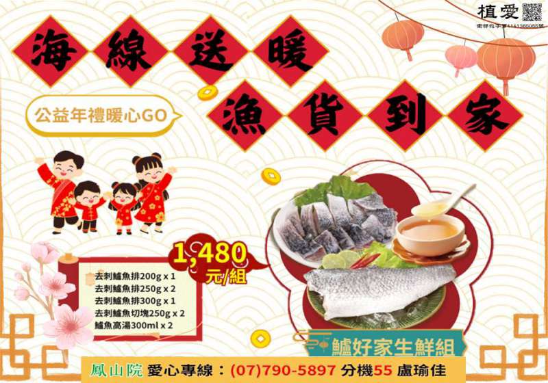 創世基金會鳳山分院首次結合高市彌陀區養殖漁業合推「海線送暖‧漁貨到家」公益義賣活動,嚴選優質金目鱸魚製成「鱸好家生鮮組」及「鱸好家即食組」兩款年禮,自用送禮皆宜,也歡迎轉贈二次公益,邀請各界認助支持植物人病友常年服務經費。