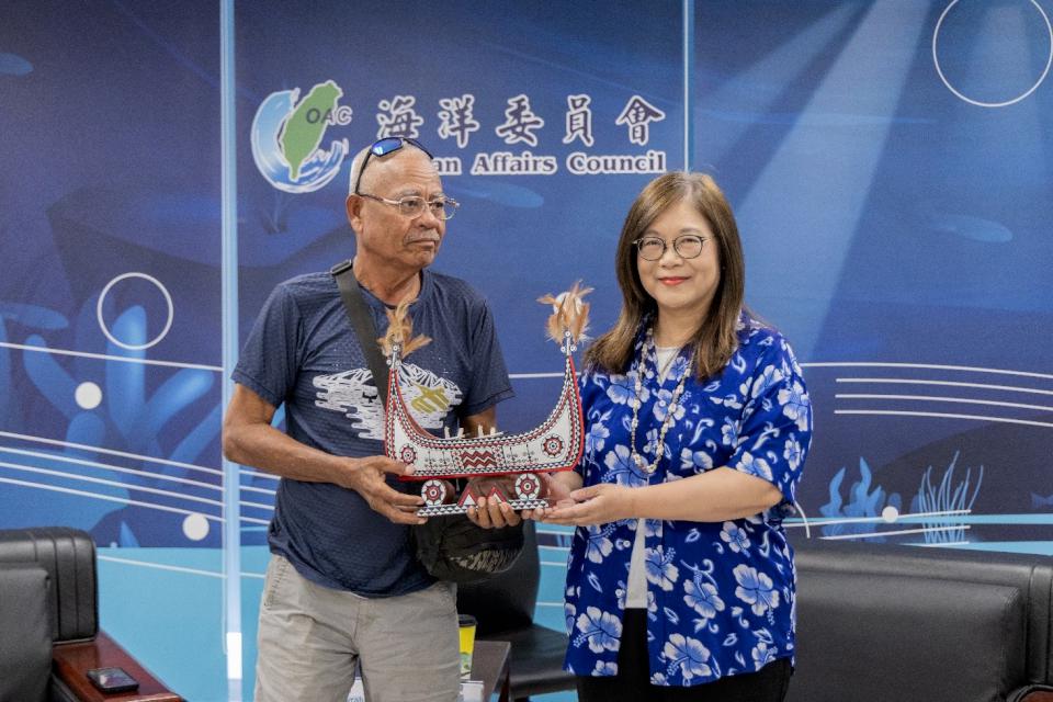 帛琉帆船無私分享號(Alingano Maisu)船長Sesario Sewralur(圖一左)3月9日領軍拜會海洋委員會,主委管碧玲(圖一右)代表致贈達悟族拼板舟模型、《2025海洋政策白皮書》、海洋保育署繪本《海邊的星星巨人》等紀念品,象徵臺灣對傳感佩無私分享號展現航海連結人群精神,體現海洋永續共同價值,2025年出席韓國亞太經濟體(APEC)合作會議曾與帛琉海洋部長交流,盛大歡迎無私分享號再訪台,也感謝國立中山大學教授謝百淇協助促成。無私分享號留台期間與台灣航海社群及原住民族團體交流,海委會重視振興傳統海洋文化與傳承原民海洋文化。