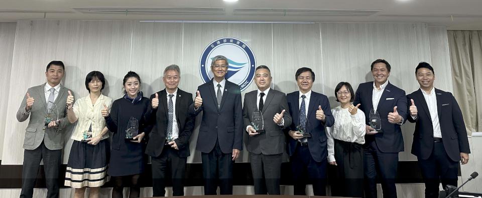 交通部航港局船舶運送業及船務代理業僱用國籍船員選拔4月21日頒獎,局長葉協隆(圖左五)表揚金保順海業董事長徐浩翔(圖右五)、中鋼運通總經理林錦駿(圖右四)、長榮海運經理白宗原(圖左四)、陽明海運經理陳安順(圖左一)、萬海航運課長張齡藝(圖左三)、裕民航運資深副理卓雅秋(圖左二)、東方風能科技人資經理蘇世明(圖右一)等績優航商代表,中鋼資深經理林靖雯(圖右三)、東方風能營運長Ben Darrington(圖右二)等人見證,其中長榮海運、陽明海運、東方風能科技進用女性國籍船員比例顯著成長,裕民航運、萬海航運進用待業滿2年船員,呼應新增僱用回流國籍船員獎項精神。圖/航港局提供、文/高培德