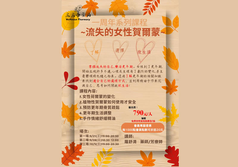 透過了解更年期的相關知識來找到適合自己的處理方式,並利用精油手作來沉澱自己,思考如何開啟欣生活!