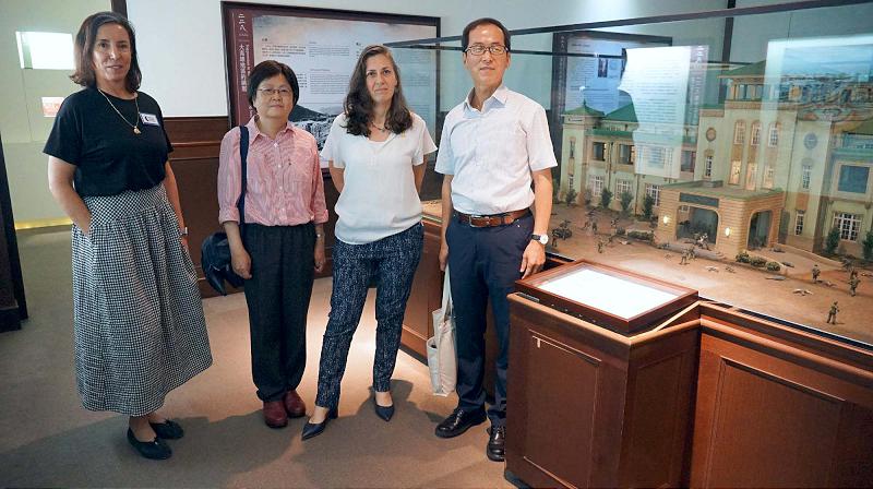 高市文藻外語大學、高市歷史博物館4月27日受邀合辦駐台北以色列經濟文化辦事處《她和我的故事—猶太大屠殺的記憶傳承》專題講座,以色列記憶傳承大使計畫重要推動者、猶太大屠殺倖存者後裔奧莉‧瑟拉(Orly Sela)(圖一左一)分享1944年二次世界大戰曾被播搭乘牲畜列車前往奧斯威辛集中營祖母耶胡蒂‧畢克斯(Yehudit Biksz)生命歷程,以色列駐台代表游瑪雅(Maya Yaron)(圖一右二)、文藻外大圖書館館長張守慧(圖一左二)、高史博館長李文環(圖一右一)等人全程聆聽。