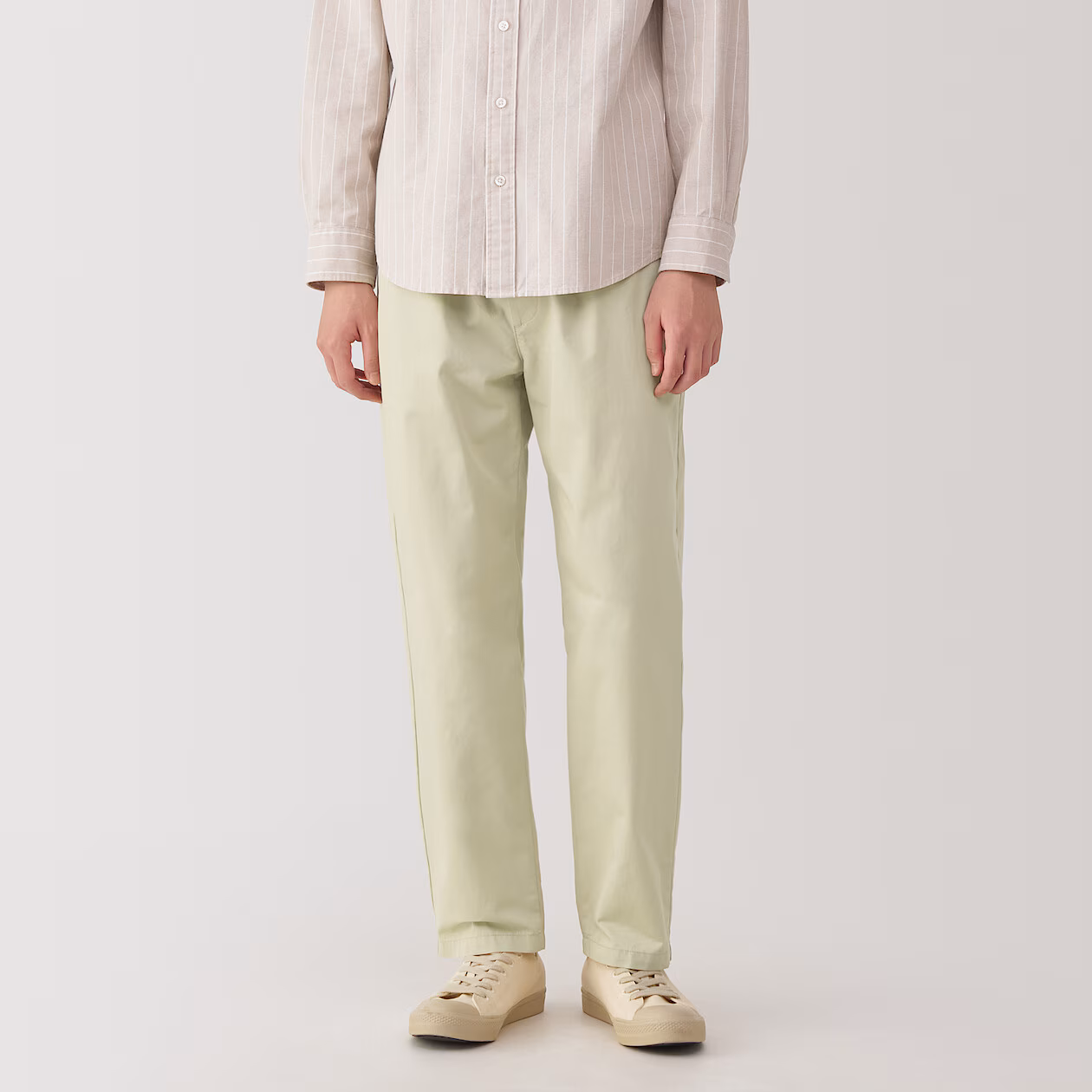 為祈求一年的好運氣,MUJI無印良品提議新春穿搭可以亮色系或粉嫩色系為主,女裝推薦三款新品,包含女吉貝木棉混二重紗織長袖套衫煙燻綠與粉紅色的女水洗棉舒適錐形褲,若氣溫下降,外層則可再搭配一件輕盈好活動的女吉貝木棉混二重紗織刺縫外套或依據不同體感,選擇更為保暖的羽絨服飾系列等。男裝推薦男吉貝木棉混二重紗織長袖襯衫,不論單穿或作為第二層罩衫都很合適。若想兼顧保暖並創造多層次風格,則可在外層選擇男吉貝木棉混人字紋鋪棉背心搭配同色系的男吉貝木棉混人字紋工作外套。下身除了有淡綠色的男水洗棉舒適長褲可供挑選外,煙燻藍的男吉貝木棉混人字紋寬版褲也是較為亮色系的單品推薦之一。