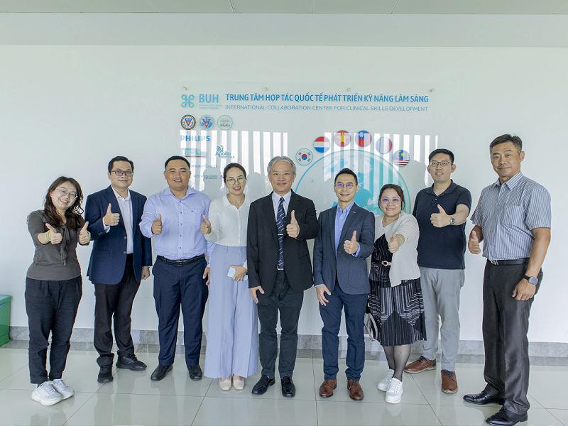 除論壇與展覽外,高醫亦安排參訪在地合作醫療院所,由林宗憲副院長偕團再訪肯特省芹苴醫藥大學附設醫院(CTUMPH),除洽談醫護臨床合作並演講智慧醫療主題;至多樂省邦美蜀醫藥大學與附設醫院(BMU & BUH),雙方於教學大樓擇定第一階段「台灣醫衛精品示範點/遠距教學點」,讓越南當地醫療人員透過示範點,了解台灣醫衛產品特色,並分享本院通過3次JCI國際評鑑之寶貴經驗,該校主動提出派員來本校院學習醫學臨床技能測驗(OSCE) ,與雙邊OSCE師資交流合作,預打造成中越具國際OSCE師培課程與考場的醫學大學。此外,預計與胡志明市醫藥大學附設醫院(UMC)展開多專科團隊合作(MDT),針對雙邊疾病照護特性進行討論,今年8月安排心臟內科醫師前來學習心肺運動功能測試(CPET),結合心臟內科與復健科之跨科培訓,並進一步洽談合作項目涵蓋精準癌症治療、AI臨床應用、疾病照護品質認證、遠距醫療與國際轉診等多元領域。