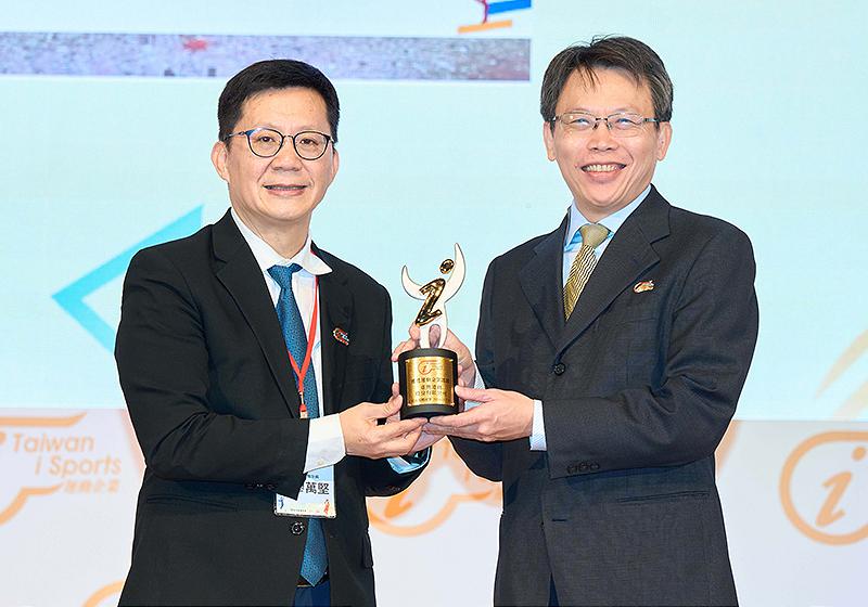 臺灣港務113年續攜手臺中港務榮獲教育部體育署運動企業認證,臺灣港務研究委員蘇建榮(圖右)代表受獎,蘇建榮說,臺灣港務秉持人本經營理念,致力優化職場環境及健康資源,鼓勵員工積極參與運動,促進身心健康。