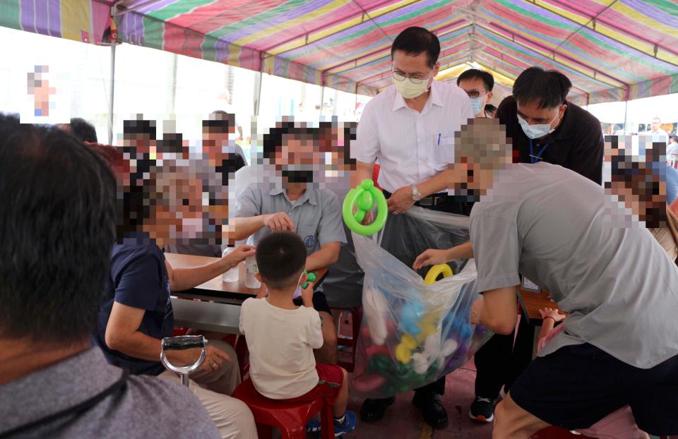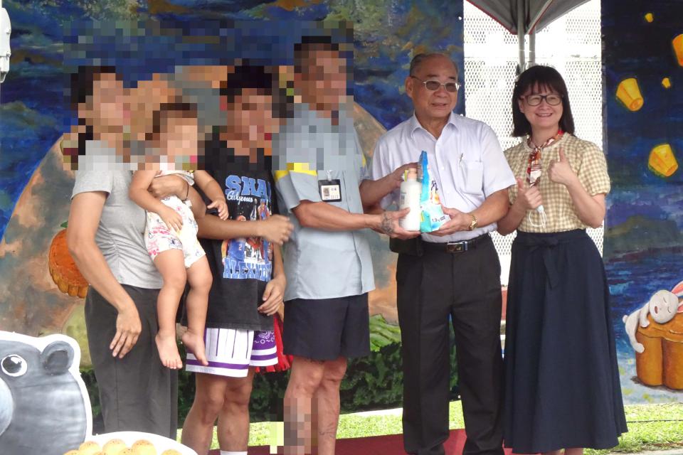 法務部矯正署高雄監獄9月16日及17日舉行114年中秋節面對面懇親活動「柚見中秋月圓、溫情高監團圓」,470名收容人及705名家屬參與,典獄長林明達、台灣更生保護會高雄分會主委陳義成、中華民國犯罪矯正協會高屏澎分會執行長李三榮致贈收容人「枕邊細語—為孩子說故事」光碟及低收入家庭生活用品,並分送親子造型氣球,現場還提供拍立得全家福合照服務,盼能紓解收容人思鄉情愁,早日服刑期滿回歸家庭及社會。圖/高雄監獄提供、文/高培德