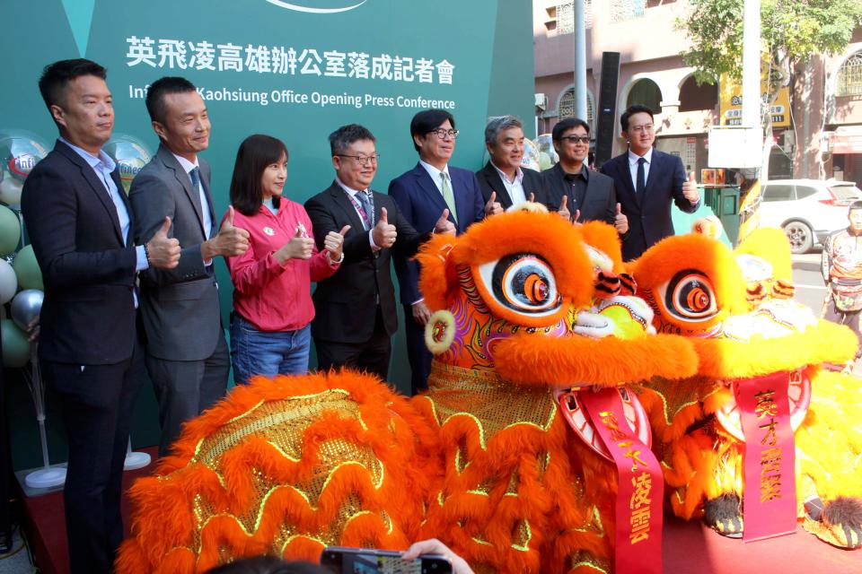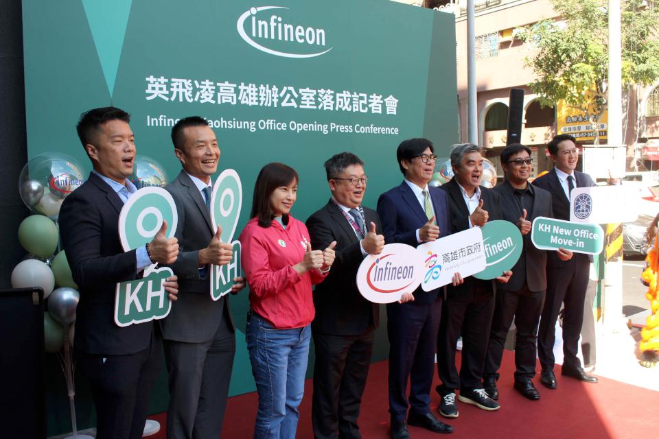 高雄市長陳其邁、英飛凌晶圓委外製造部副總駱漢誠等人12月18日剪下綵帶,宣布高雄辦公室進駐左營區孟子路啟用,經發局長廖泰翔、市議員李雅慧等人歡喜見證,未來聚焦結合半導體封裝及測試外包商策略合作,推動半導體產業技術研發及優化製程,提供優質、可靠解決方案,加速落實低碳及人工智慧應用。圖與文/高培德