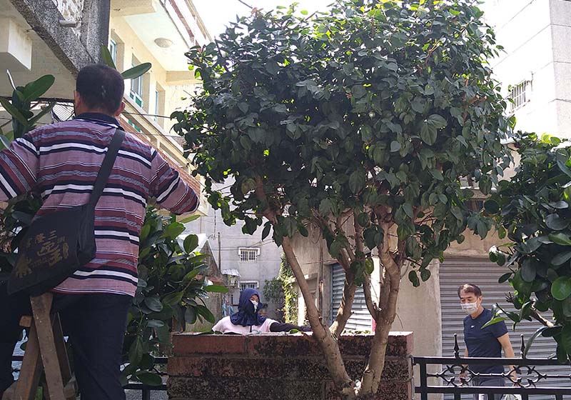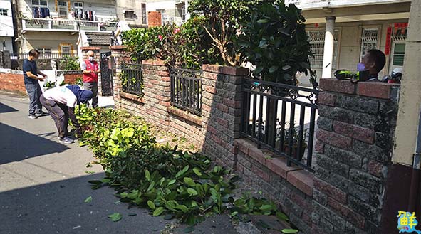 ▲榮欣志工們協助修剪樹枝,一同協助環境整理,並整理修剪完的樹枝落葉。