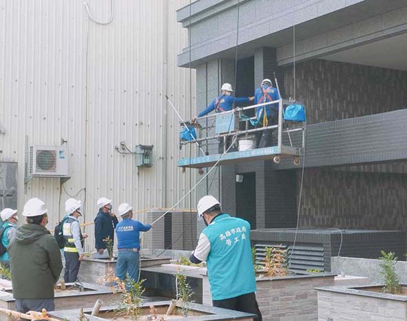 勞工局表示,大樓外牆清洗及修繕危險性高,應評估適切作業方式,如採用吊籠(洗窗機)應先上勞檢處官網通報,同時須設置救命索(垂直安全母索)、制定安全作業標準及提醒勞工確實配戴安全護具,作業前檢視機具及支撐構造物安全,落實區域管制及設立警告標示,作業過程持續督檢維護人員安全。