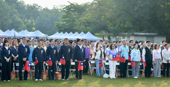 高市府中華民國114年國慶升旗典禮暨健走活動10月10日上在澄清湖風景區大草原舉行,吸引超過5000人參與,市長陳其邁率市府團隊祝賀國家生日快樂、國運昌隆。