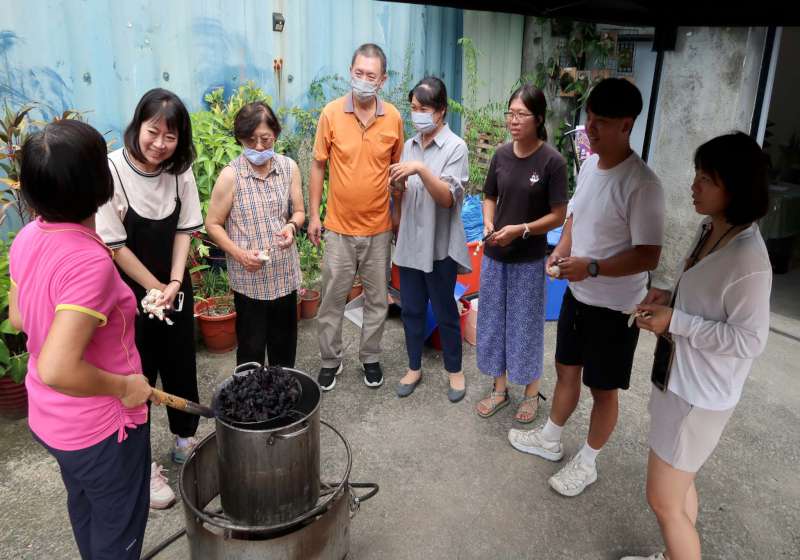 高市農業局規劃基礎培力與設計實作兩階段課程,培訓農民種子老師,打造在地獨有食農力,其中基礎培力9月開課,吸引50名農漁民、農漁會人員及教師參與,設計實作課程10月份登場,安排學員走訪大寮拷潭地區,邀請文化環境發展協會理事長黃思慈導覽解說濕地重要作物菱角,黃思慈說,拷潭中「拷」台語「洘(khó)」諧音,代表黏稠泥漿,引導學員理解環境條件與作物關係,並體驗菱角殼汁液染部,探索農業副產物再利用可能,燕巢國中生物教師張淑娥現場講解雌雄蕊特徵,還透過顯微鏡呈現菱角花與葉柄膨大氣囊構造,展現教育結合農業加乘效益。