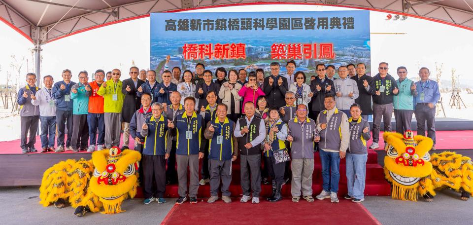 內政部長劉世芳、高市副市長李懷仁、經發局長廖泰翔、南部科學園區管理局長鄭秀絨等人1月2日上香參拜隨後啟動舞台水晶球,歡喜宣布高雄新市鎮橋頭科學園區啟用,劉世芳說,園區多年前仍是農地,轉型高科技產業基地,所幸中央地方通力合作,加上基層民代協助,克服環評、排水及聯外交通等挑戰,推進重大建設,未來串連南部半導體S廊帶,帶動高科技產業發展。
