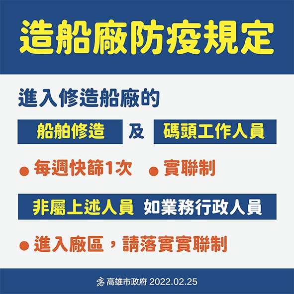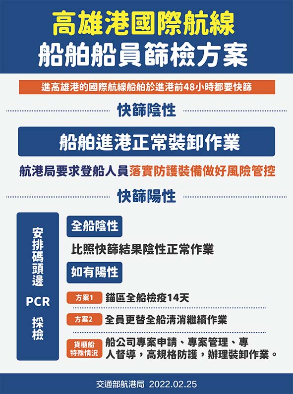 交通部航港局副局長陳賓權會中說明高雄港國際線船舶作業人員進港前48小時完成快篩,呈現陰性正常裝卸貨並落實風險管理,快篩呈現陽性全船停泊檢疫14天、全面環境清消、貨櫃船專案申請、管理、督導辦理裝卸作業。造船廠船舶修造、碼頭作業人員每週快篩一次,並落實出勤實聯制,其他作業人員進入廠區落實實聯制。圖/衛生局提供、文/高培德