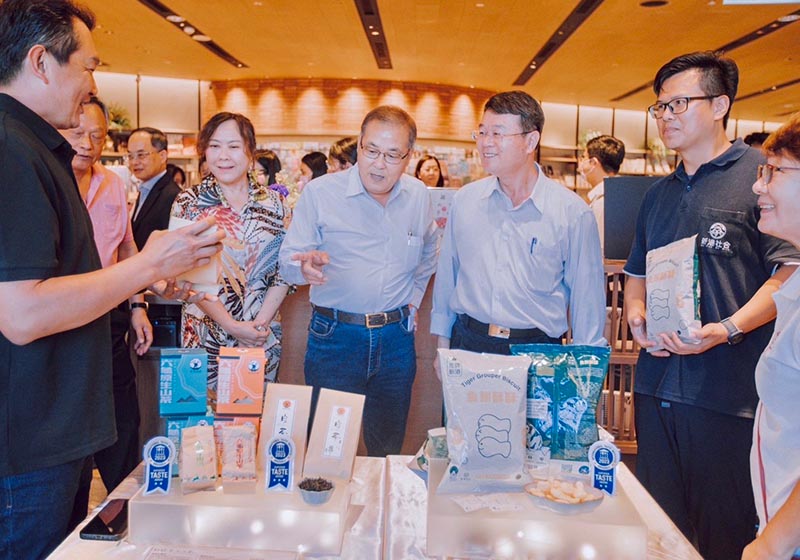 享譽食品界米其林比利時國際風味評鑑所(ITI)2023年評鑑結果揭曉,高市農業局輔導六龜新發社區發展協會原生山茶系列「長韻碧玉茶」、「醇香紅寶茶」及「葉香白鑽茶」;永安新港社區發展協會「魚餅酥酥」、中外餅舖「貴妃笑」及「蕉蕉女」、蜂巢氏與南勝社區發展協會聯名「荔枝鮮果飲」及「蜜箱蜂蜜檸檬水」等8項產品聯手摘下17顆星,其中新發社區「醇香紅寶茶」及「葉香白鑽茶」同獲三星肯定,7月5日在享譽全球最美書店舉行成果發表及聯合行銷活動,食材達人徐仲擔任引食人,與六龜新發、旗山糖廠、永安新港社區發展協會、中外餅舖、蜂巢氏、小甜心手工果醬等單位代表探討在地特色食材風味,並了解獲獎社區發想創意及產出成果心路歷程。