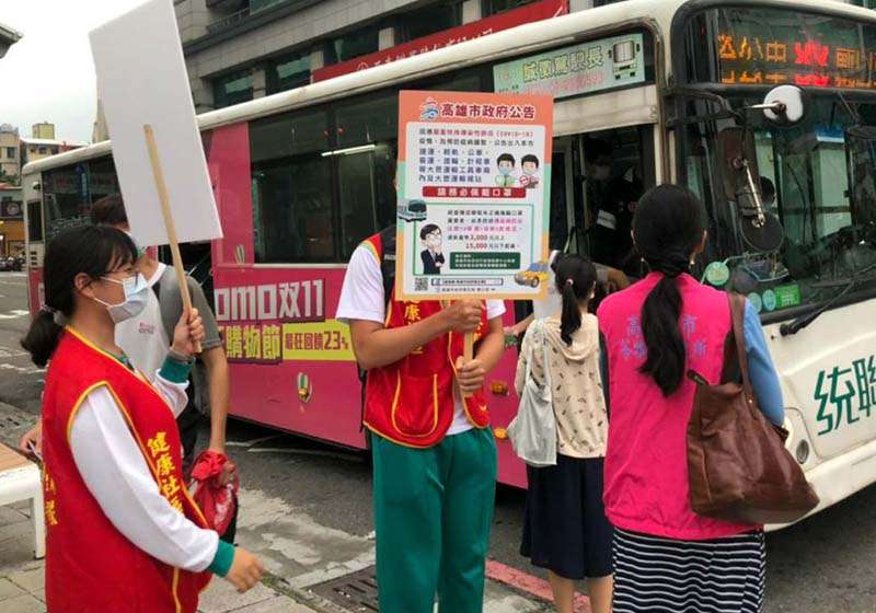 根據中央流行疫情指揮中心資料顯示,最近3天全球每天新增超過60萬例新冠肺炎確診個案,台灣最近一週境外移入累計19例,創6個月來新高,高市衛生局11月9日動員百名人力,前往火車、捷運、高鐵、輕軌、公車、計程車、客運、渡輪等8大類交通運輸場域走動宣導,查核從業人員及民眾配戴口罩情況,發現3%民眾未遵守規定,經勸導後改善。