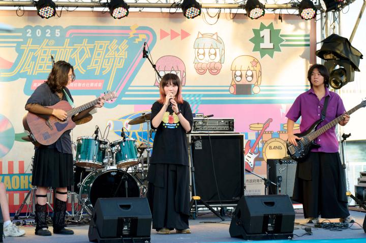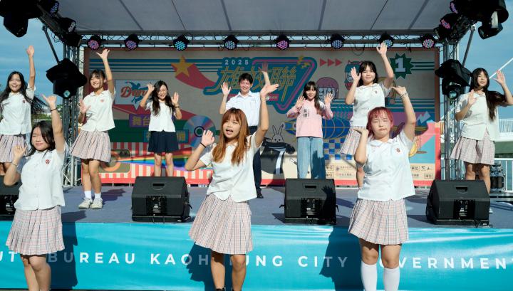 高市青年局「2025雄校聯-高中職X大專校院聯合社團成果發表會」6月14日在高雄港大港橋淺三碼頭舉行,21所學校、35組學生社團輪流登台獻藝舞蹈、樂團、饒舌、劍術、電音等,青年局長林楷軒、教育局長吳立森、立委邱議瑩、黃捷、市議員白喬茵等人到場,為選手加油打氣。