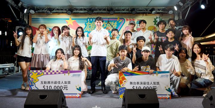 贏者全拿社團PK戰透過線上網路票選中山大學吉他社與高雄高商韓舞社並列人氣王,獲得10000元獎金。「制服 Dress Code」參與者換上制服,並提供專業攝影服務與限量相片沖洗服務,另發放覺醒之星限量徽章,寬4.5公尺黑板牆開放書寫青春宣言。推廣街友議題「人生百味」、關注性別與酒文化「酒與妹仔的日常」、力推ACGN產業權益創作協會等三非營利組織設置互動體驗攤位,引導青年認識社會議題,強化公民意識。圖/青年局提供、文/高培德