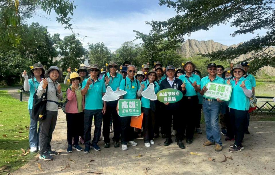 高市地質公園與台東縣政府農業處、地質公園協會、富岡、富源、利吉社區等單位25名成員9月19日齊聚高市田寮月世界地景公園交流「石灰岩惡地形」,探討地景保育、環境教育、地景旅遊及社區參與等面向工作,高市農業局長姚志旺說,持續深化推動雙邊地質公園科學教育與永續發展,行銷高雄,鏈結全球。