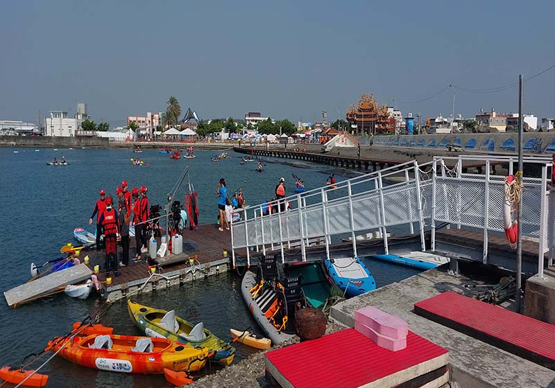 海洋委員會補助高市海洋局辦理「海FUN無礙、浪愛澎湃」漁港水域系列活動,10月18日至19日在彌陀漁港海岸光廊率先起跑,結合中華民國水中運動協會導入龍舟板、雙人獨木舟等無障礙親水輔具,並安排雙人水上鋼鐵人特技表演炒熱氣氛,攜手海洋委員會斥資約500萬元打造無障礙浮動碼頭歡喜啟用,海洋局局長石慶豐、海委會海洋資源處處長吳龍靜、彌陀區長陳景星、彌陀區漁會理事長莊添壽、立委邱志偉、市議員宋立彬、黃秋瑛、林志誠、方信淵、陸淑美等人參與開幕式,石慶豐說,高市扮演全台漁業及海洋觀光重鎮,海洋局力推全民親海,期盼藉由活動,鼓勵身障朋友自在參與,落實海FUN無礙精神。