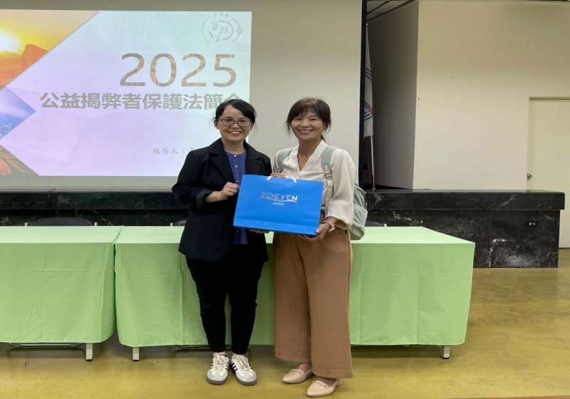 台灣中油煉製事業部10月17日邀請法務部廉政署種子教官、中油潤滑油事業部政風經理黃靖琪(圖右)舉例說明公益揭弊者保護法立法背景、適用對象、保護機制,鼓勵從業人員員知法、守法、敢言,煉製事業部政風室主任吳佳玲(圖左)代表致贈紀念品表達感謝。圖/中油煉製事業部提供、文/高培德
