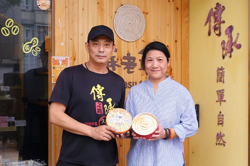 蘇老爺現由品牌二代蘇立棋、蘇禾豐姊弟接手。承自父親經營起,產品就堅持以原物料製成、沒有其他食品添加物,「這是我們品牌的中心思想。」蘇立棋說,他的父親認為簡單、自然才是最好的,接手後他也延續同樣的精神維持傳統做法,跟上現代經營方式,從批發轉為零售,再引進冷藏設備,讓這款過去秋、冬限定的古早味零嘴,四季都能買得到。