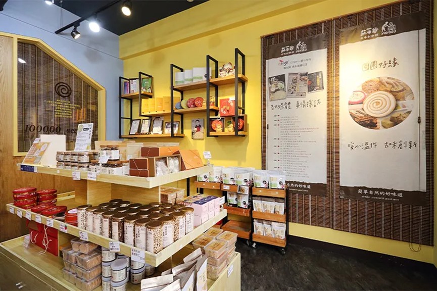 疫情期間從仁武搬遷到鳥松的「蘇老爺古味創新館」,是許多觀光客到高雄指定造訪的伴手禮名店,店裡主打古早味的包餡麥芽糖,除了最經典的花生口味,還有多款結合在地農產的特色風味,產品都是每天新鮮製作。