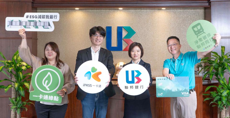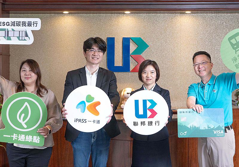 iPASS一卡通票證9月10日宣布聯邦銀行領先全台導入一卡通企業減碳平台,運用數位工具精準掌握碳排放數據,朝淨零轉型加速邁進。一卡通票證總經理鄭鎧尹(圖左二)、電票服務規劃部協理王鳳蘭(圖左一)、聯邦銀行副總盧文娟(圖右二)、業務管理部經理陳弘明(圖右一)等人合影留念。