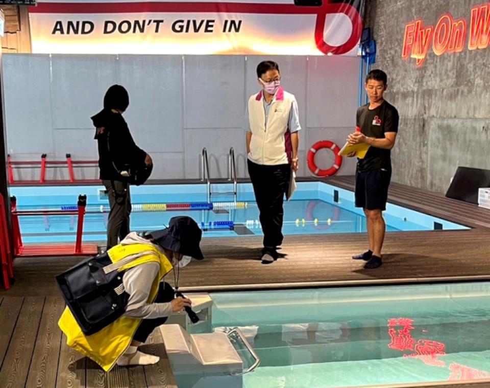 高市運動發展局110年起查核運動場館,114年續會同消防局、衛生局、環保局、工務局、經發局及行政暨國際處消保官等單位,5月稽查16處公、民營游泳池商業登記、建築物公共安全、消防安全設施設備、室內空氣品質、緊急救援設置、菸害防制及場所衛生管理、登革熱防治、無障礙設施與服務資訊、救生員及相關救生設備,其中一家明顯處未張貼菸害防制標章,依違反菸害防制法第19條第1項第2款規定裁罰並限期改善。圖/運發局提供、文/高培德