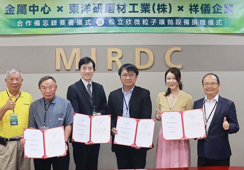 在經濟部產業技術司科長何祥瑋等人見證下,財團法人金屬工業研究發展中心董事長劉嘉茹8月19日與日本東洋研磨材工業株式會社(TOYO)及祥儀企業簽署合作備忘錄(MOU),透過技術應用及研發合作加值產品,串連台灣材料、設備、終端應用等領域,有效縮短研發及測試時程,深耕綠色製造關鍵能力,松立欣也現場捐贈第二台微粒子噴拋處理設備,金屬中心執行長賴永祥代表接受,設備有助完善前、熱處理至模擬測試等製程。圖/一卡通票證提供、文/高培德