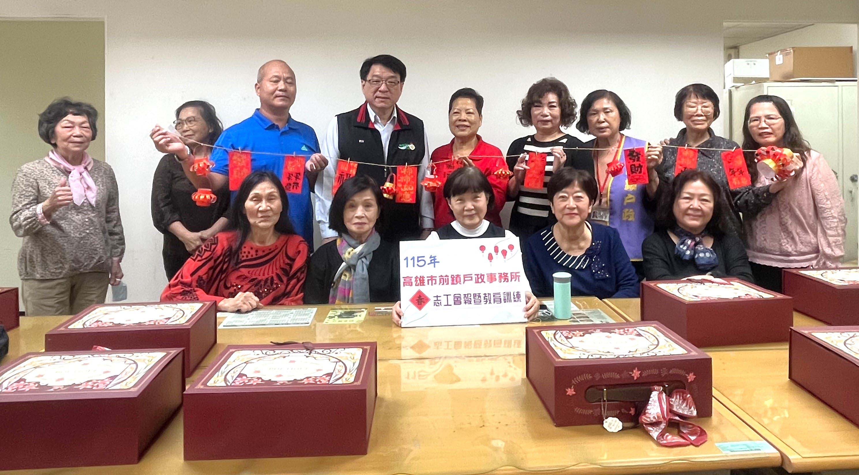 高市前鎮戶政事務所1月30日辦理志工會報暨教育訓練,規劃志工會報、教育宣導、業務講習等活動,期能強化參與人員戶政相關知識,另安排學員體驗紅包拓印及認識戶政所常用英語,前鎮戶政所主任陳百山說,活動促進志工與機關互動,提升專業知能與服務品質,也感謝志願服務人員辛勞付出,未來續推多元培訓及關懷交流措施,精進為民服務量能。圖/前鎮戶政所提供、文/高培德