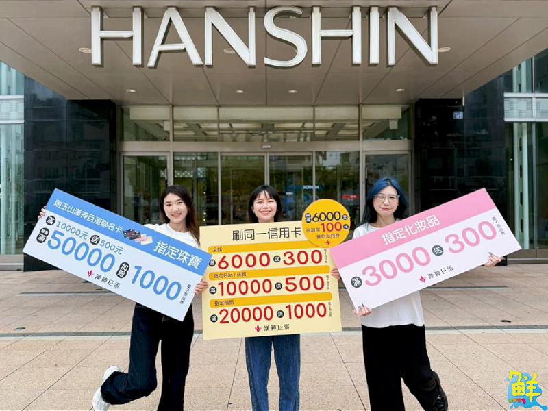 為回饋消費者,即日起至7/13(日)於全館刷卡消費滿6,000元送300元,單筆滿6,000元再加碼贈100元4F餐飲抵用券(限量)。指定精品滿2萬送1,000元;指定名品與珠寶滿1萬送500元,刷玉山漢神巨蛋聯名卡珠寶單筆消費滿5萬還加碼贈送1,000元。還有即日起至7/27(日)化妝品區滿3,000元送300元。另外即日起至8/24(日)只要當日消費滿2,000元,還可參加總抽獎活動,有機會將VMOTO輕巧電動車騎回家。