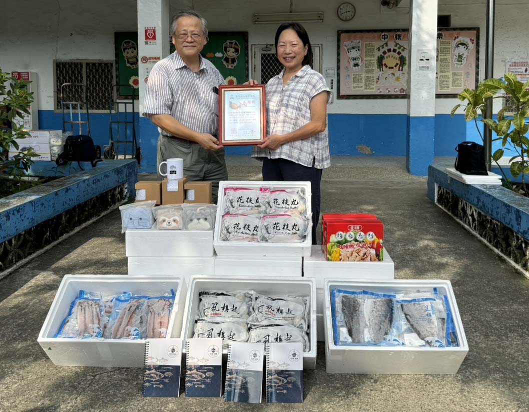 高市海洋局攜手加拿大規模最大批發商國華食品,配送鱸魚、虱目魚、小卷、花枝等優質水產運抵六龜、旗山等區14處關懷育幼據點,海洋局副局長鐘致遠(圖一左)頒狀感謝國華食品董事長周怡華(圖一右),高市私立基督教山地育幼院院長楊子江(圖二左)也回贈周怡華感謝狀,海洋局長黃登福說,水產含優質蛋白、維生素、礦物質、高度不飽和脂肪酸(Omega-3)等成分,期能藉由捐贈行動嘉惠弱勢孩童,激勵專注學習成長。