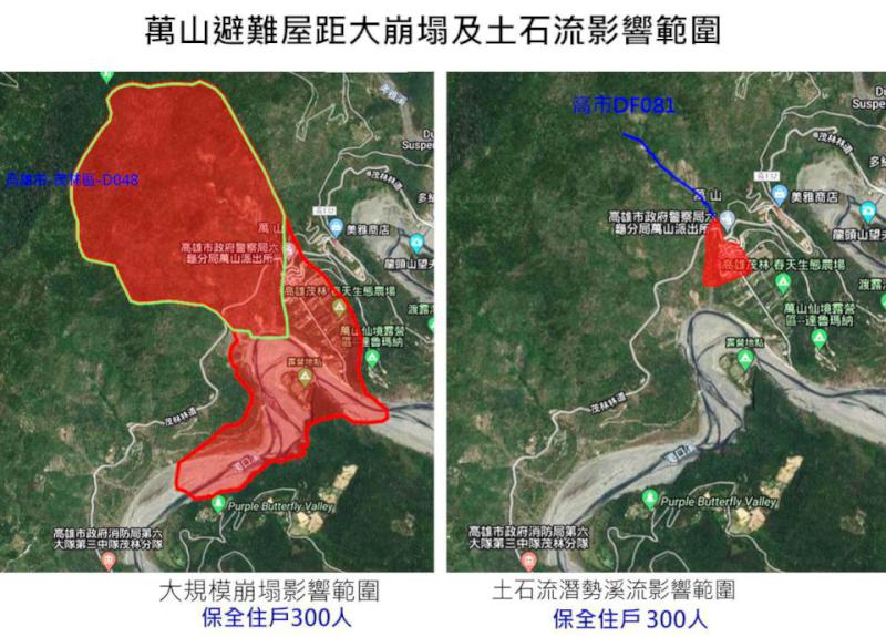 ▲萬山避難屋距大崩塌及土石流影響範圍