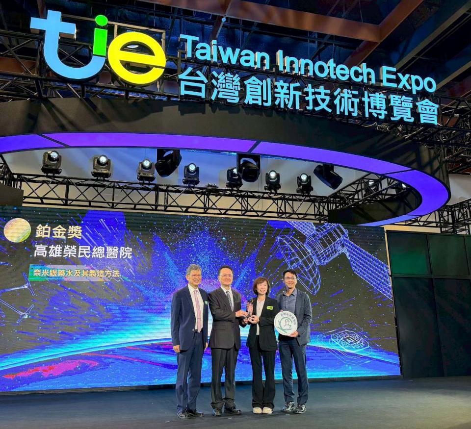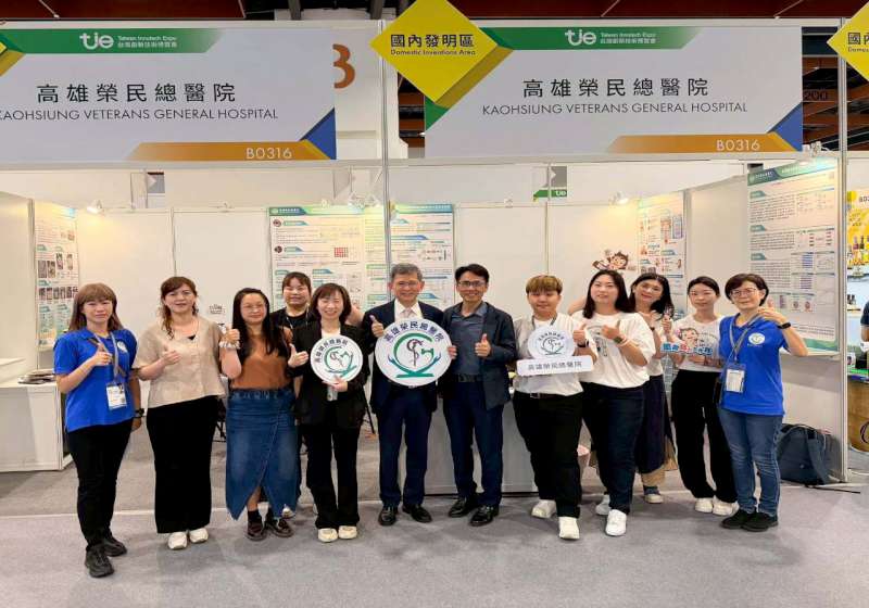 高雄榮總6項專利囊括2025年台灣創新技術博覽會1鉑金、1金、1銀、2銅,刷新歷年紀錄,其中包括鉑金獎鄭珮妏、陳瑛瑛、曾清浚、顏峰霖「奈米眼藥水及其製造方法」、金獎陳金順、林清煌、莊旺川、林佩津、鄭翊君、魏今秀、楊淳涵「以學習者為中心的全景智慧全人教育平台」、銀牌護理團隊「遊戲式肺活量訓練系統及平台」、銅牌「睡眠輔助裝置」、「引流袋輔助支架」,院長陳金順說,榮耀歸屬研發人員,也象徵落實醫院創新醫療、人本理念。圖/高榮提供、文/高培德