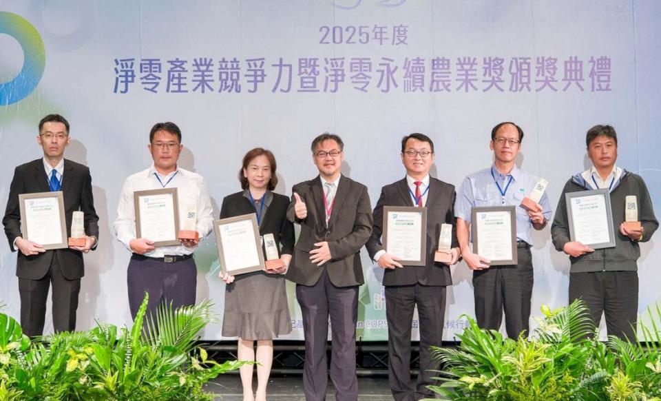 財團法人二十一世紀基金會2025淨零產業競爭力頒獎典禮10月23日舉行,中鋼力推二軸高值化精緻鋼廠、發展綠能產業及低碳、數位、供應鏈轉型等三轉工作,落實節能減碳及資源循環獲得肯定,中鋼環境保護處處長汪俊育(圖右三)代表接受國際氣候發展智庫執行長趙恭岳表揚。