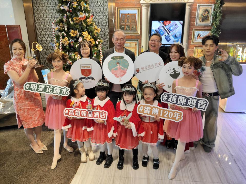 高雄翰品酒店跨界攜手國民香氛品牌明星花露水12月23日至2026年1月4日合推香傳120年系列活動,明星花露水董事長許清風、郭琳賢伉儷、高雄翰品酒店總經理林俊宇、高市會展協會創會長楊志中等人完成噴香儀式宣布活動起跑,南台灣藝術舞蹈團舞者芭蕾舞重現品牌跳舞女孩標誌圖像,一樓大廳參展品牌珍藏物件、人工智慧技術還原老照片串成影片及新品香氛,並開放民眾索取紀念明信片,書寫文字、噴上最愛香味並蓋上專屬郵戳後投入郵筒,活動結束統一郵寄傳達思念與祝福,現場同步設置蟹寄生環拍照區,邀請情侶、親友上傳親吻合至個人社群並標註兩主辦單位,即贈品牌香氛玲瓏瓶一份,限量100份,送完為止。圖與文/高培德
