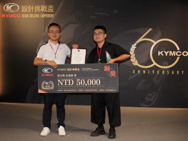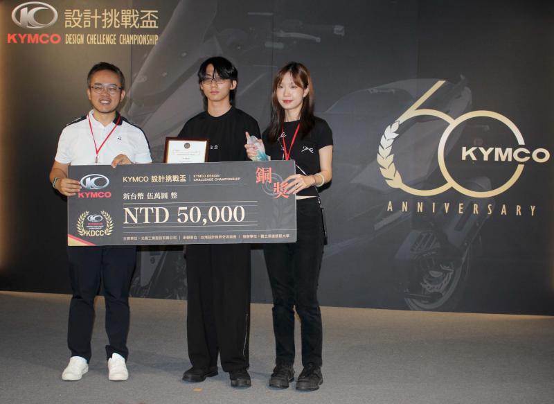 KYMCO光陽工業主辦、國立高雄師範大學協辦、台灣設計跨界交流協會執行2024年第13屆設計挑戰盃 (KDCC)競賽,主題定為「新世代日常生活(The NEXT Daily Life)」,吸引全台27所大專院校、166件作品角逐,經複賽評選15組晉級7月6 日決賽暨頒獎典禮,最終國立台北科技大學陳學冠、余欣蓓、黃浩庭《STRIO叁旨》勇奪金獎與15萬元獎金(圖一),中原大學林紘立、林晉揚《PROTEUS參數化形變載具》(圖二)、國立高雄師範大學陳奕霖、蔡昕澔《ROMNA新世代約會車浪漫na》(圖三)同獲銀獎與7萬元獎金,明志科技大學&東海大學曾振彥、小林文也、鄭亦珊《Forest Expectant森孕者》(圖四)、國立臺灣科技大學林浚銘、張宸瑜《NoahsRider與極端氣候共存載具》(圖五)、並列銅獎及5萬元獎金,光陽工業研發中心副總徐文元等人表揚獲獎團隊,徐文元說,透過競賽提供青年探索移動載具應用日常生活舞台,進一步思考可用題材。