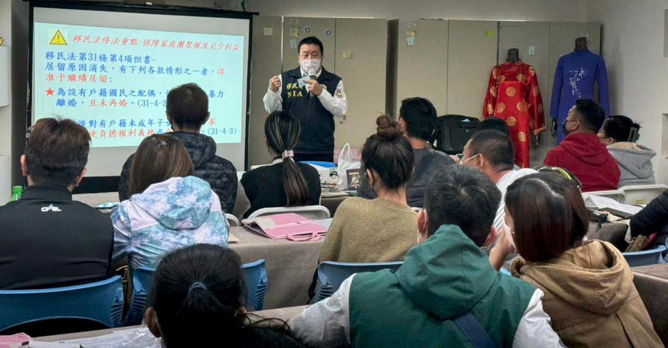 入出國及移民法修正條文112年6月28日修正通過,新增民眾權益113年1月1日上路,加重罰則及收容規定預計3月1日施行,移民署南區事務大隊高市第二服務站1月23日首辦家庭教育暨法令宣導課程,專員郭宗賓介紹新住民居留權益,並邀請高市教育局家庭教育中心教師蘇森永傳授家庭經營技巧,期勉新住民互敬互愛,過程還穿插互動遊戲考驗彼此默契。