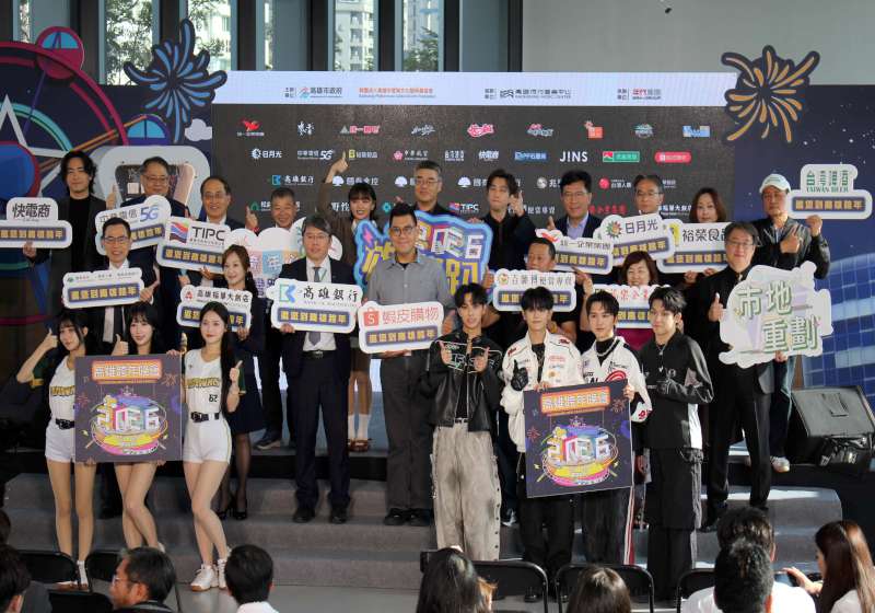 宣傳活動也揭示採霓虹色系結合跳動線條設計主視覺,象徵跨世代同樂派對,取材夢時代摩天輪、高雄流行音樂中心等景點搭配桃紅、藍紫、橘黃等色呈現,「2026」化身吉他、鋼琴、音響與DJ盤,外圍輕軌環繞,彷彿整座城市齊開趴,喜迎城市盛典。