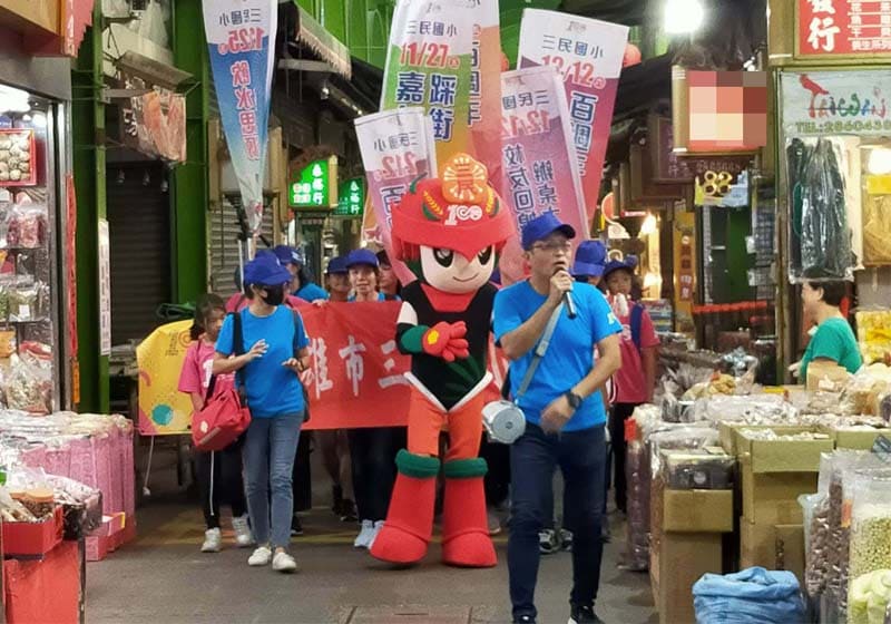 高市三民區三民國小100週年校慶系列活動11月27日由三太子踩街遊行率先起跑,動員超過500名師生、家長、校友從學校東側門集結出發,校慶吉祥物三民百戰士首度亮相加入陣容,並在高苑工商電音三太子及舞龍舞獅引導下,繞行三德西街、三鳳中街等街道,沿途經過鳳北里、興德里、鳳南里、千歲里、千北里等社區,吸引路人圍觀,榮泉汽水工廠總經理陳滿卿為師生加油打氣,遊行隊伍停留三鳳宮廟前廣場會師,獻藝太鼓隊、跆拳道、直排輪、電音三太子、中高年級學生大會舞等精彩表演,師生尾聲齊呼「祝三民國小百歲生日快樂」,為百年校慶造勢加溫。