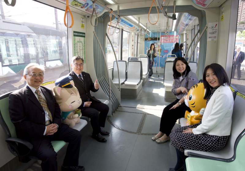 楊岳崑說,列車結合日本岡山縣岡山城、吉備津神社、倉敷美觀地區等景點,車廂內高捷貓站長蜜柑、虎航虎將、岡山桃太郎公仔躍上座位,瞬間化身旅遊打卡景點,旅客近距離感受台日文化魅力。