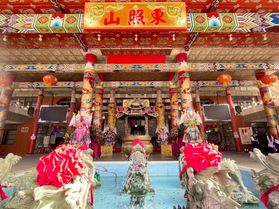 高雄東照山關帝廟融合佛、道、儒、釋等宗教教義,委請苗栗縣三義鎮雕刻師選用紅豆杉原木製作玉皇大帝長2公尺50、高2公尺,可追溯日治時期,背部天龍盤踞護持,法相莊嚴。
