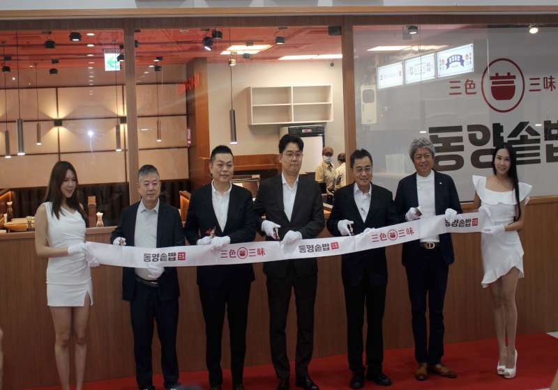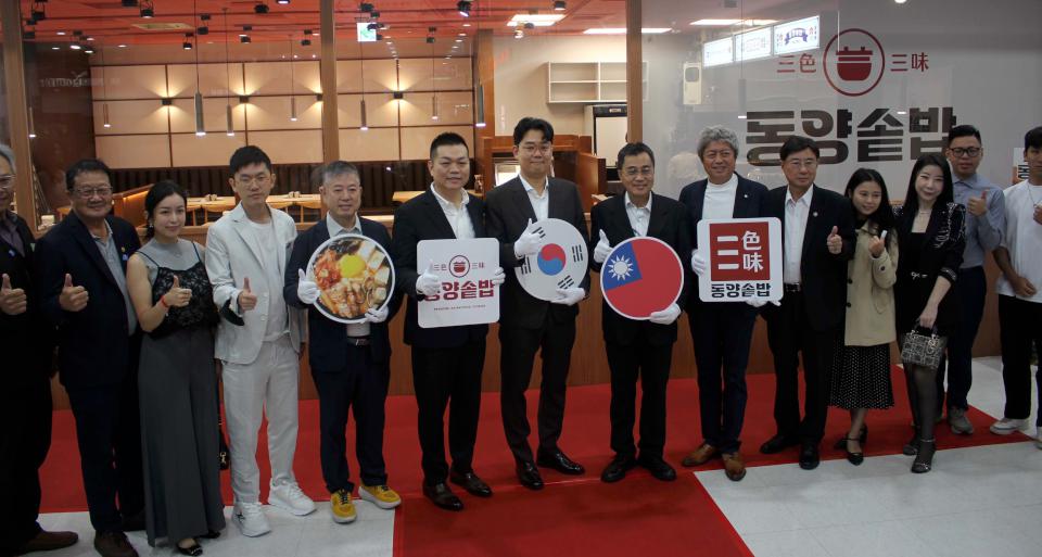 韓國代表李旼奎(圖一左四)、台灣總部總經理潘字孺(圖一左三)、高市經發局副局長林廖嘉宏(圖一右四)、高雄烹飪公會理事長王俊華(圖一左二)、商業研究院代表黃俊皓(圖一右三)、工業研究院總監李偉宏(圖一右二)等人11月17日剪下紅䌽,歡喜宣布韓國連鎖餐飲品牌「三色三味」進駐家樂福高雄鼎山店開幕迎賓,品牌主打6分鐘現煮釜飯,強調專利釜鍋技術與韓國直送食材,即日起小菜無限量供應,指定鍋物贈韓國進口海苔,消費滿額加贈哈密瓜霜淇淋一支,潘字孺說,未來規劃佈局全台並開設至少10家分店,同時成立中央廚房,確保產品一致性及供應效能。圖與文/高培德