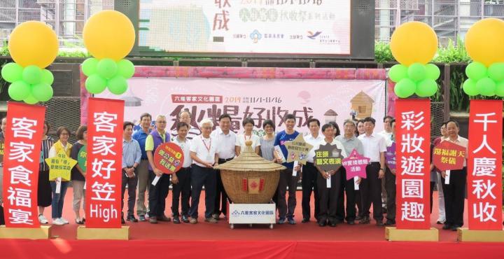客家委員會客家文化發展中心旗下六堆客家文化園區「2019秋糧好收成—六堆秋收祭」系列活動11月1日正式登場,規劃還福謝天祭儀、客家好笠High千人彩繪斗笠、六堆最鬧熱彩妝遊園趣、客家食福宴、庄頭藝文演出、Hakka好手藝DIY手作體驗、古早農村竹編裝置藝術拍照區等,客發中心主任何金樑帶領12鄉區公所代表啟動舞台道具為活動造勢加溫,邀請全民抽空到場參與,詳情可上官網查詢。圖/六堆客文園區提供、文/高培德