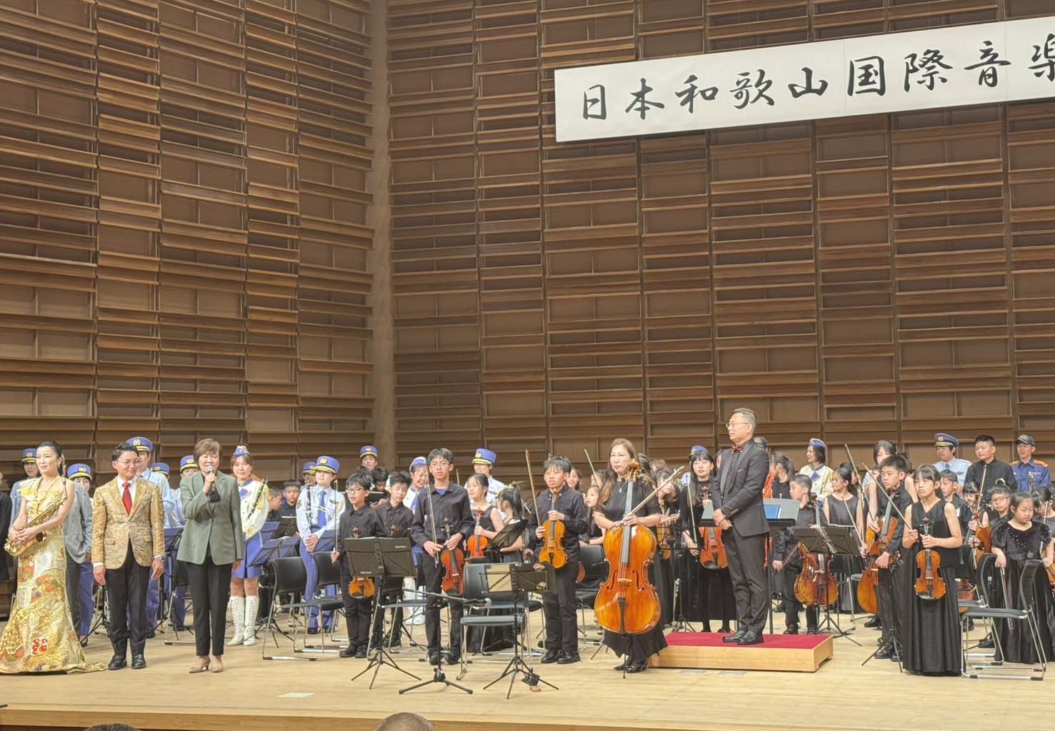 台灣新希望樂團團長陳永展受邀擔任2025年日本和歌山國際音樂祭音樂總監,高市鼓山區龍華國小、中山國小與三民區博愛國小46名學生合組管弦樂團,5月9日與和歌山縣市小學同台獻藝,前日本首相安倍晉三夫人安倍昭惠尾聲現身會場,她說,感動高市設置安倍晉三銅像,珍惜難得情誼,到場為高雄友人加油打氣,和歌山市市長尾花正啟、駐大阪辦事處處長洪英傑、和歌山市政府教育局局長奧山由佳、和歌山市議會議長丹羽直子等人同場聆賞。