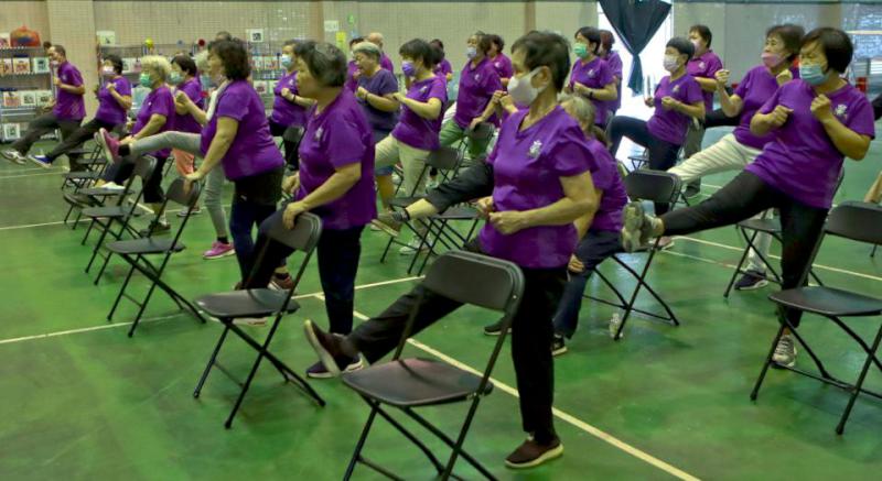 高市大寮運動中心前進大樹辦健康公益活動 輔英科大教練引導社區長者運動揮汗