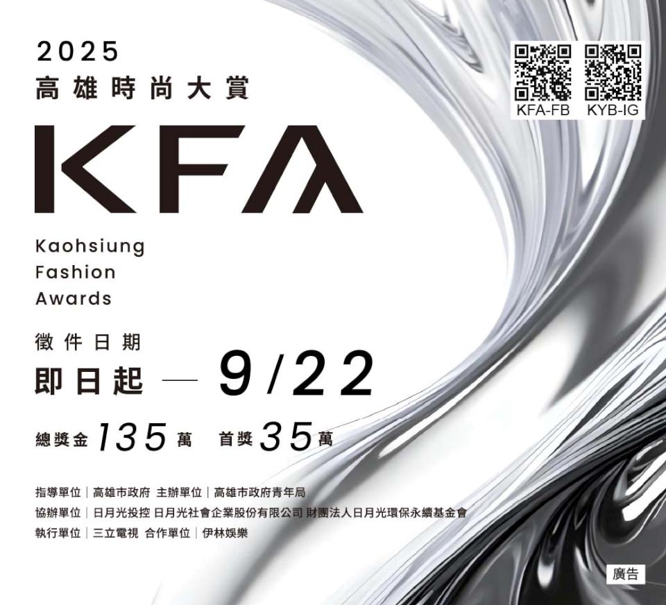 高市青年局2025第6屆高雄時尚大賞(KFA)即日起至9月22日受理18至35歲青年設計師或設立未滿5年且未滿45歲負責人報名,總獎金135萬元,首獎可獲35萬元,還有機會接軌國際時尚舞台,青年局長林楷軒說,相信設計價值從舞台延伸市場,競賽提供設計者築夢機會,快速接軌時尚產業及國際舞台。