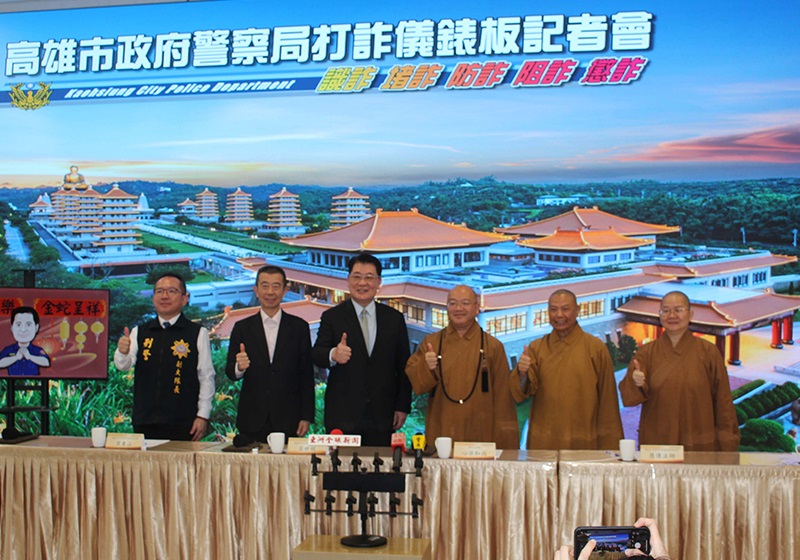 配合佛光山寺114年春節平安燈法會,高市警察局2月12日前進佛陀紀念館宣導防詐,高市警局副局長呂世明、主秘梁東山、佛光山寺住持心保和尚、副住持、都監院院長慧傳法師、佛陀紀念館館長如常法師等人參與,高市刑大副大隊長許志雄簡報打詐儀錶板及最新詐騙手法,根據市警局統計,截至114年1月,假投資、網購、假交友(投資詐財)、解除分期付款(假買家騙賣家及中獎通知排名前5,其中假投資詐騙財損金額占62.49%高居榜首,期盼藉由宣導,號召出家師父及信眾響應,呼應佛光山寺已故創辦人星雲大師倡導做好事、說好話、存好心等三好運動精神。