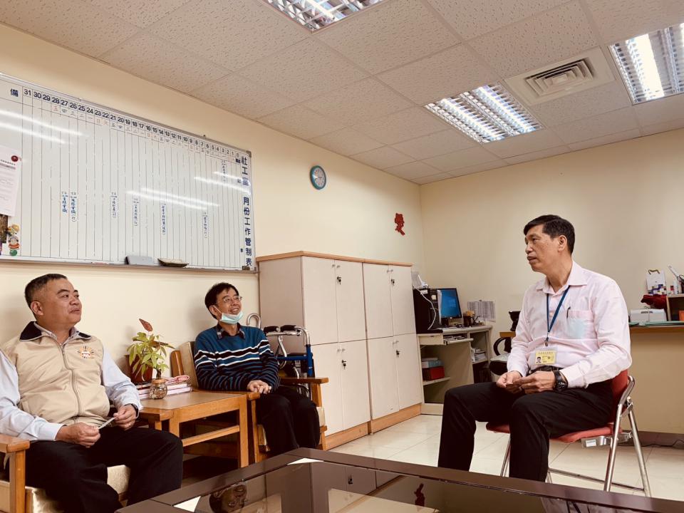 ▲高雄市榮民服務處副處長張詠駿(左二)與高雄榮總政風室主任王鈞陶(左一)及政風組組長洪堯昌(右一)意見交流